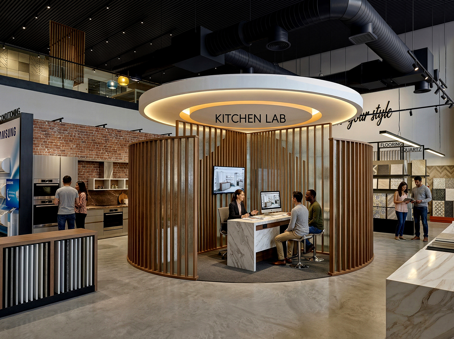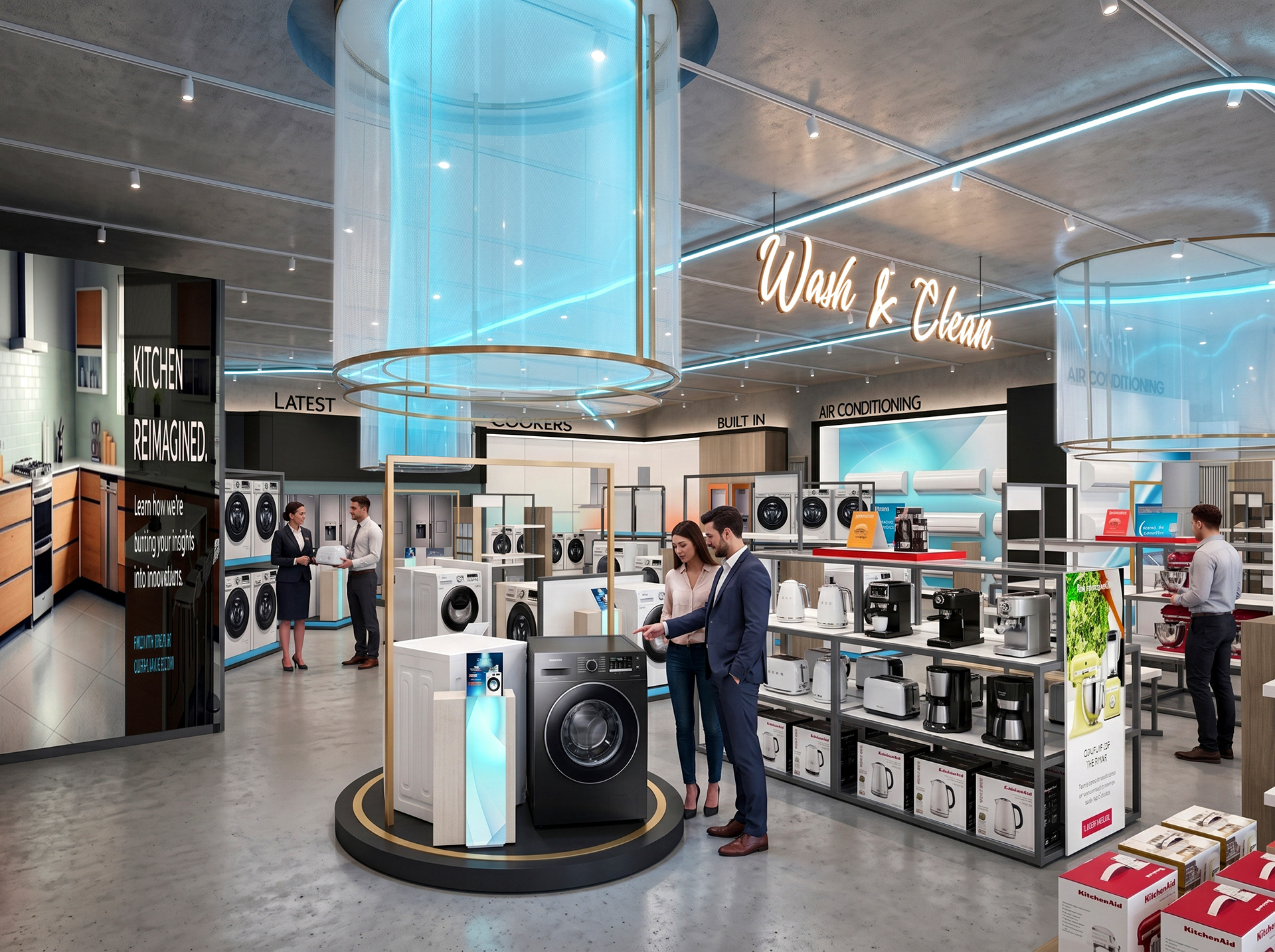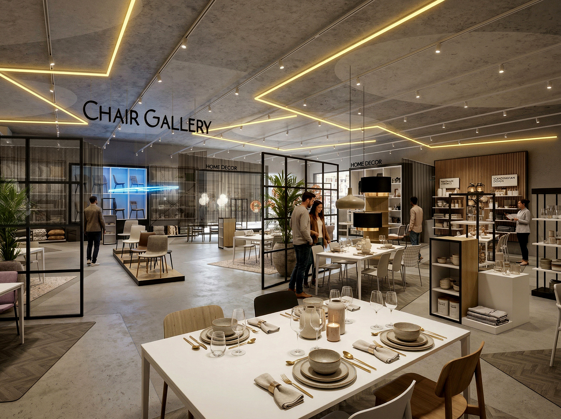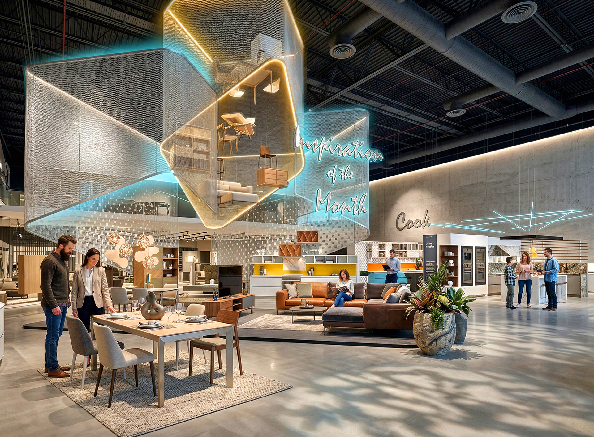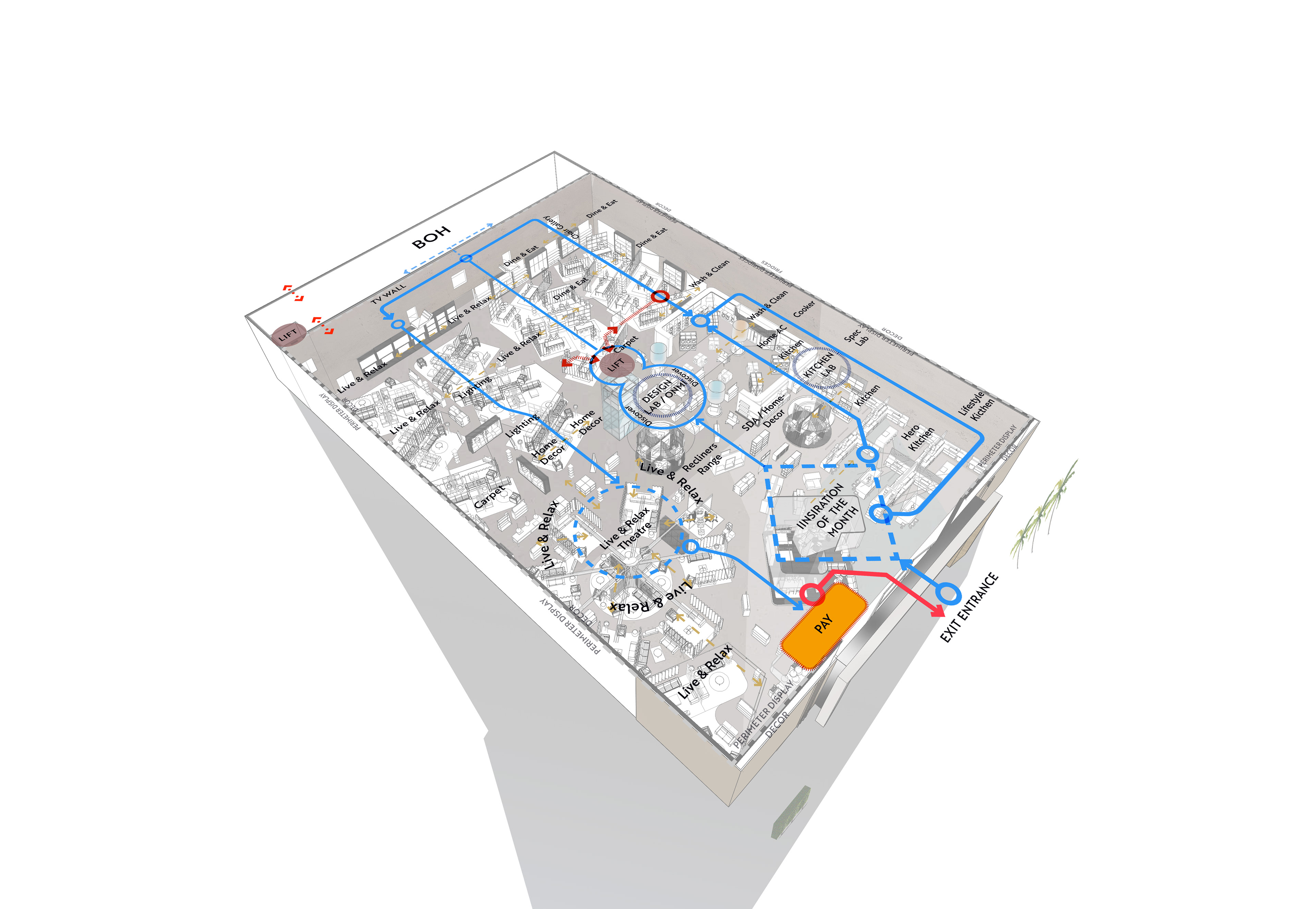 A new stand alone store spanning across two floors with a dynamic, unique & memorable front entry feature zone that sits within the heart of the front double height space, the store greets the consumer with an array of currated home furniture & kitchen displays with aasociated lifestyle installations sets that are interlaced with home accessories, kitchen sda and wg, creating a one destination experience for all your home needs.